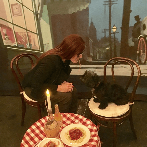 sandy-lucky-spaghetti Published February 9, 2018 at 599 × 596 in Dogs Dine on Spaghetti at ‘Lady and the Tramp’ Event ← Previous Next → Sandy and her dog Lucky share some spaghetti.