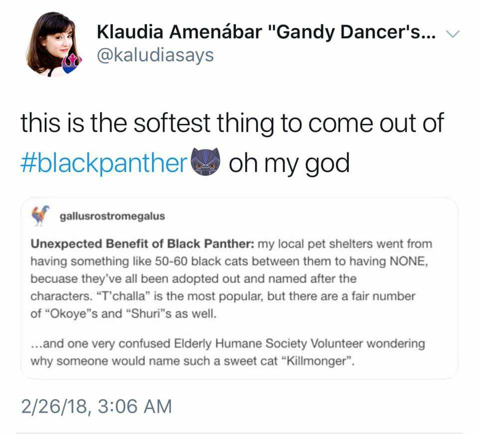 blackpanther-catadoptions Published February 26, 2018 at 960 × 872 in ‘Black Panther’ Is Inspiring People to Adopt Black Cats ← Previous Next →