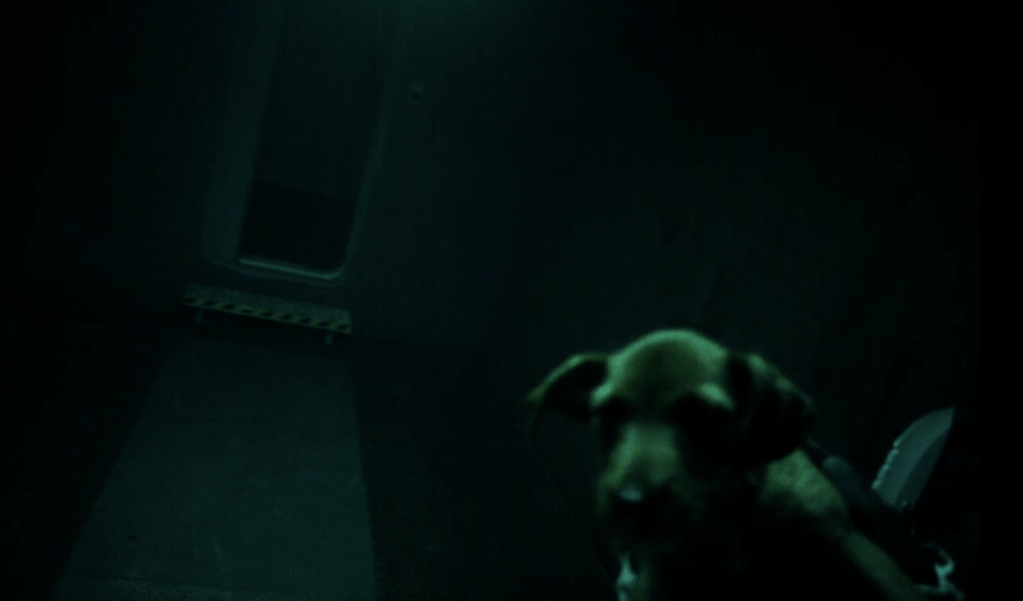 Towards the end of the film, Monte boards a ship similar to his own and encounters only stray dogs. They appear to have survived by eating each other. Monte’s now-grown daughter Willow (Jessie Ross) pleads with him to bring back one of the puppies she sees on the monitor, but he refuses, saying it would contaminate their ship.