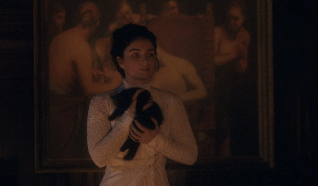 In the film, she and Tesla have a flirtation that never quite becomes a romance. She asks him, “Is nature a gigantic cat, and, if so, who strokes its back?” Tesla is seen petting various cats, evidence both of his kind nature and his enormous curiosity about how the world works.