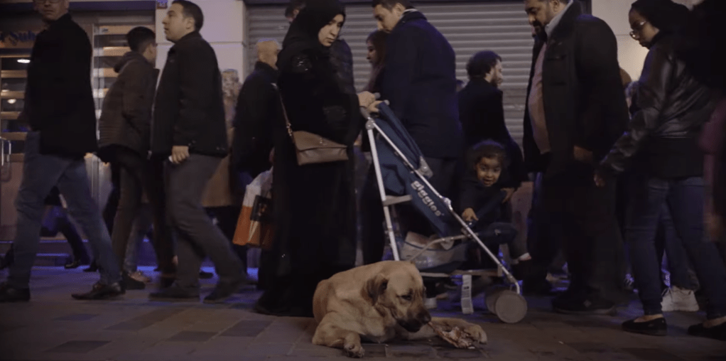 Moviepaws: Although the film is centered on the dogs, you do get snatches of human dialogue and some of the local human activity as well in Istanbul, including a women’s demonstration and the plight of these Syrian refugees. So the movie ends up being a snapshot of what’s going on politically in Istanbul as well. Is that something you had intended to include in the film?