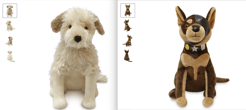 “I told stories. I said he’d come and widdled on one of my costumes, and nobody believed me. They just knew I was lying and that it was just a vicious attempt to get rid of this dog that was, frankly, upstaging me and getting in my light.” - Wink and Buddy have their own plush toys.