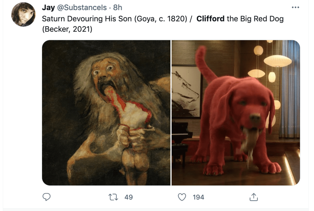 The first trailer for the live-action “Clifford” movie has dropped and while the little (real) red dog is adorable, fan reaction to the CGI-created Big Red Dog not been great. Except for inspiring memes and imaginary showdowns with other giant movie creatures.