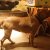 Baby appears to be an older dog as his muzzle is white and he needs help getting up on the sofa.