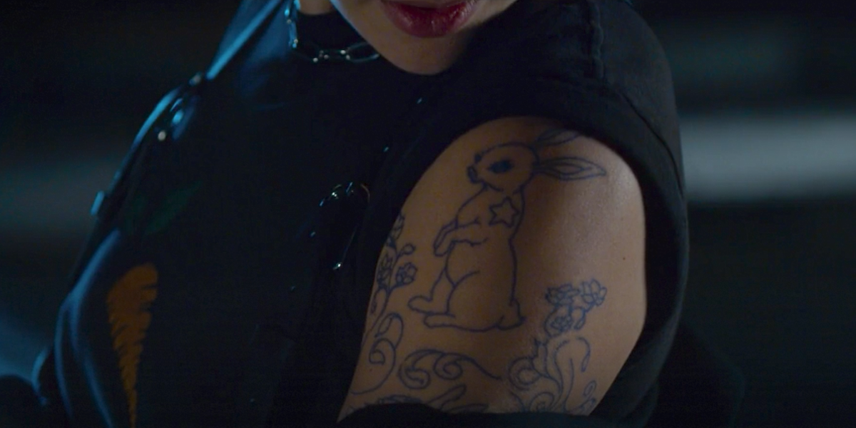 As in the first film, Neo follows a woman with a rabbit tattoo. In “Resurrections,” it’s Bugs (Jessica Henwick), whose non-Matrix name is Bugs Bunny, after the cartoon character (conveniently owned by Warner Bros). She shows Tom her Alice in Wonderland-inspired ink to convince him to come with her.