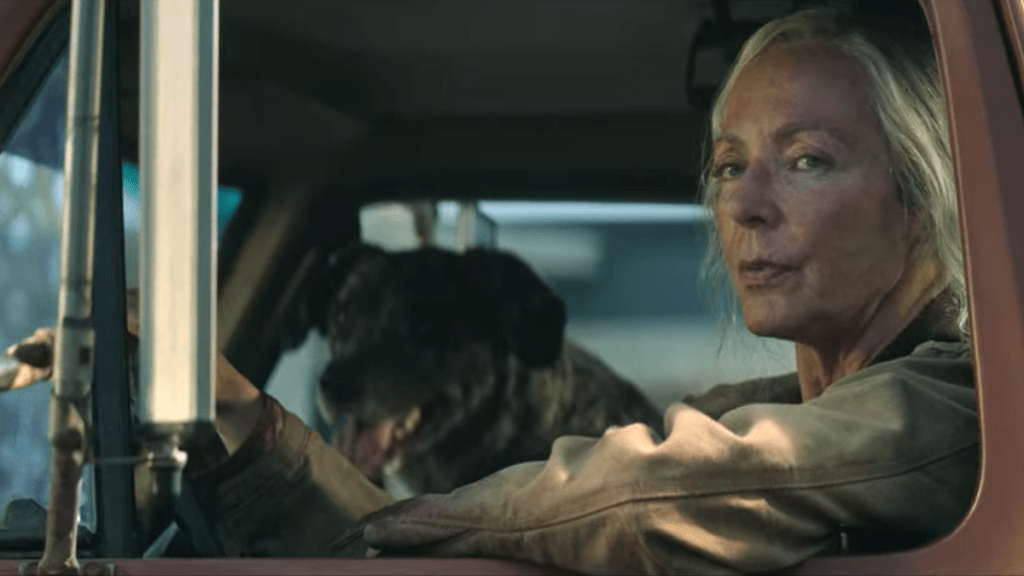 Yes. In the film’s opening scenes, Lou shoots a deer, establishing she’s (usually) an expert shot and used to fending for herself. When she comes closer, she realizes it’s still alive, which means her shooting isn’t what it used to be. We see her reflected in the deer’s eye before she makes sure it is dead. Jax the dog begins to eat the deer before she drags it through the grass, leaving blood in her path. We later see the carcass of the deer in the back of her flatbed truck, which the sheriff notices but doesn’t ticket her, even though it’s not hunting season yet.