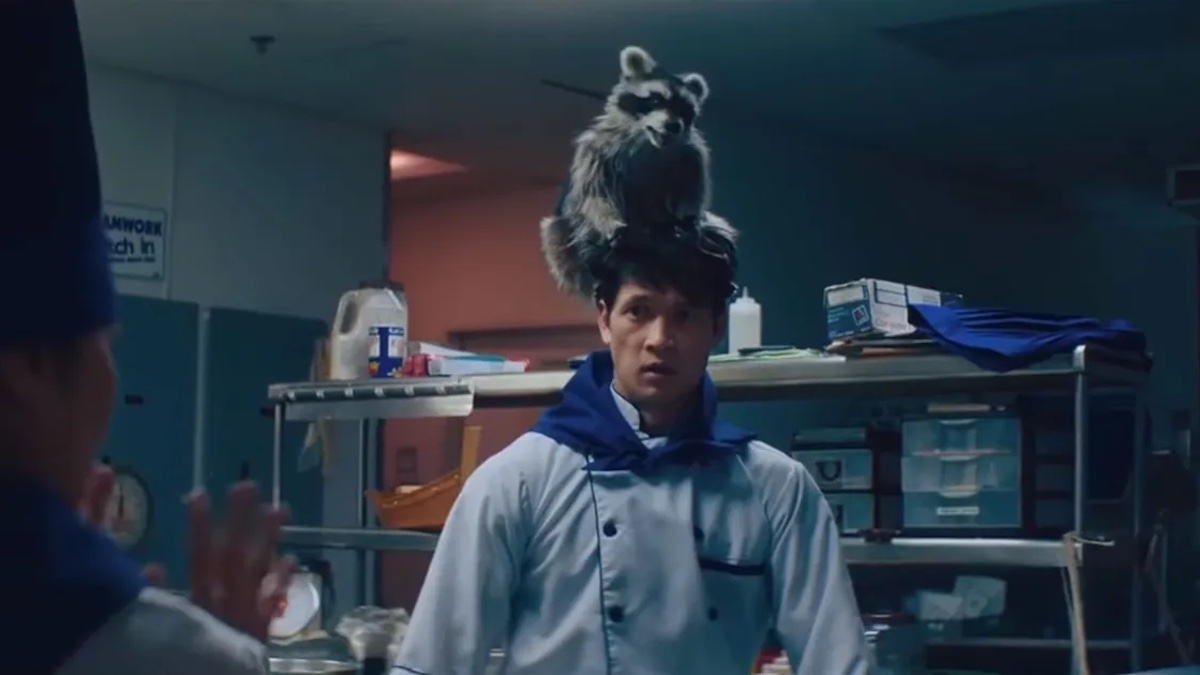 When Evelyn (Michelle Yeoh) mentions “Raccacoonie” to her husband and daughter in his Oscar-nominated multiverse film, they think she’s talking about the movie “Ratatouille,” in which a rat guides an untalented chef to make culinary masterpieces by pulling on his hair. But Raccacoonie does exist in one of the many universes that Evelyn jumps into: Here she’s a table-side chef who’s constantly being shown up her colleague, Chad (Harry Shum Jr.). Turns out all his chef skills come from the raccoon on his head. What follows is a scene where Evelyn and Chad chase down the fleeing raccoon, begging him to come back.