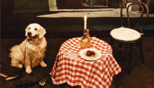 Dogs of all kinds gathered for spaghetti, Lady and the Tramp-style.